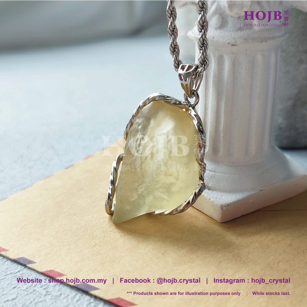 HOJB Authentic Libyan Desert Tektite Rough Stone S925 Pendant 25x32mm (17.1G) Jubaoxuan Pure Meteorite (Gold Meteorite) S925 Silver 25x32mm (17.1G)
