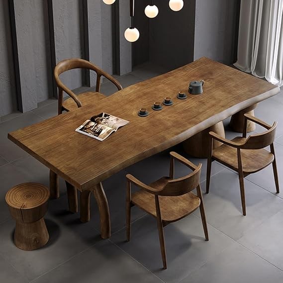 ✦ The dining table is made of solid wood, not only visually stunning, but also provide sturdy support thanks to the table's floor-level construction and exceptional weight-bearing capacity. It adds a touch of elegance and sophistication to any dining area or living room.