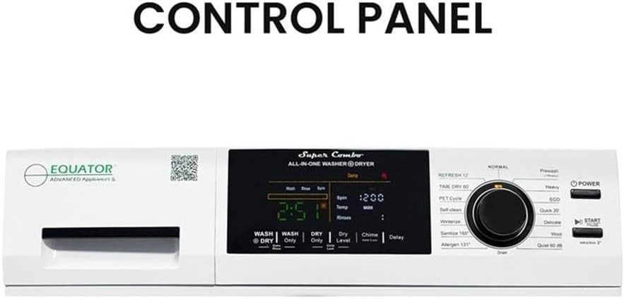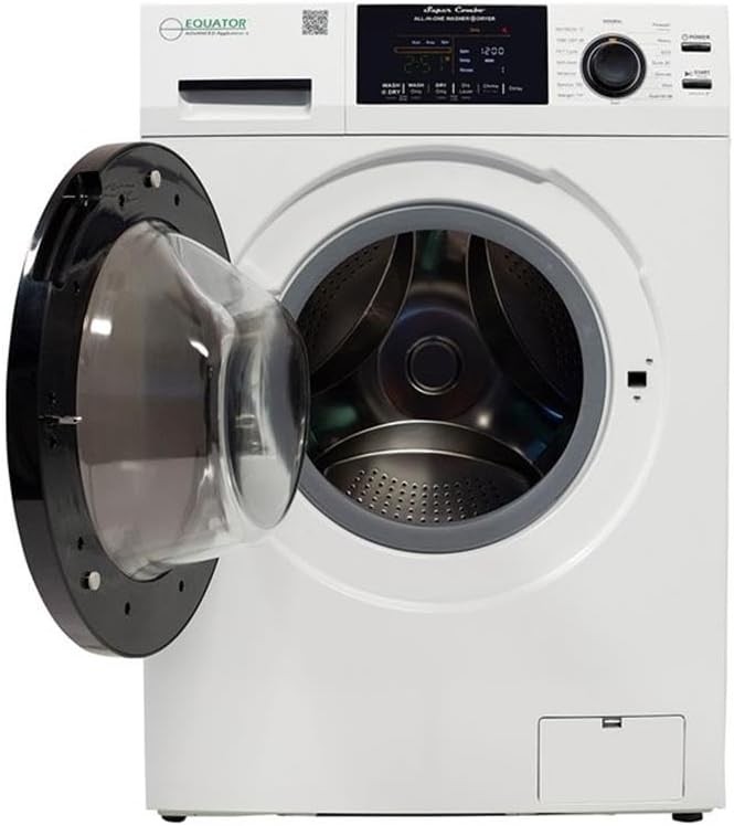 The Combo Washer Dryer EZ 4800 provides energy-saving, innovative washing, better drying, and built-in diagnostics for ultimate convenience. Specifically built for RV, with a Vented option, this appliance sets a new standard in convenience. With a quick-access QR code, user-friendly touch buttons, and a 2-minute winterizing cycle. The color-coded LED display enhances visibility. Plus it comes with dual fans for faster drying and a 13-code diagnostics system for troubleshooting. The automatic water and dry level adjustments, along with Allergen and Sanitize cycles are available while maintaining compliance with California’s Prop 65 standards. Features : - 15 Programs- Includes wash cycles, dry cycles, self-clean, winterize, and more - RV Approved Combo- A great unit for motor homes, RV's and more! Tested and approved by actual full-time RVers. - Touch Button- Operate both the washer and dryer with easy-to-use touch buttons. - Child Lock- Promote your child's safety with a secure child lock. - Delay Start- Tailor your laundry to fit your schedule. - End-Cycle Chime- Listen for your laundry in and around the house. - Vent Booster- Increase drying efficiency with a built-in vent booster to extend airflow. - Adjustable Legs- Comes wiith 4 adjustable legs for easy intstall in your home. - Diagnostics (13 error codes)- Quickly troubleshoot with built-in diagnostics.