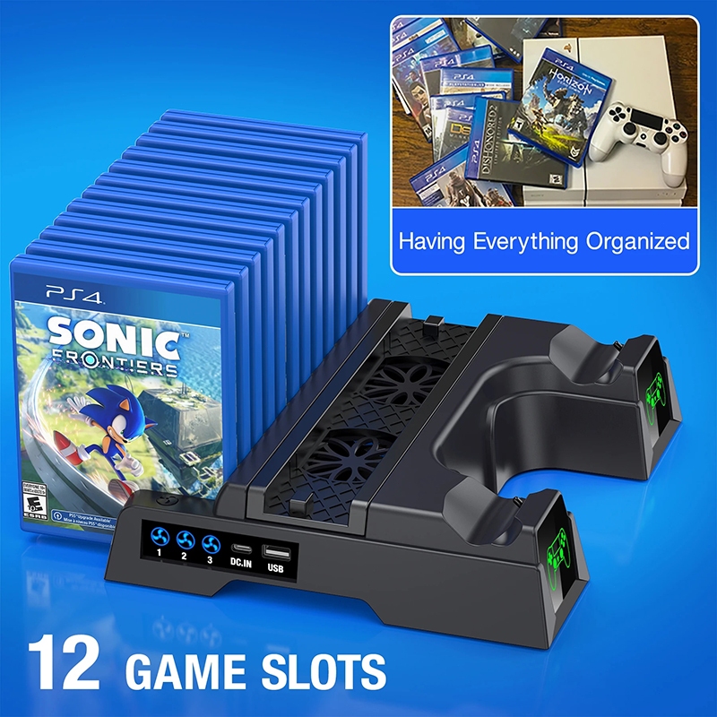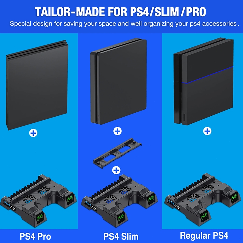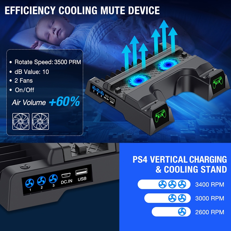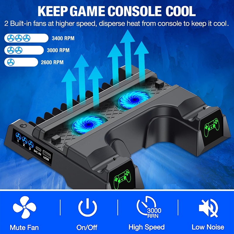 (SG 24H Delivery)PS4 Dual Charger LED Vertical Cooling Stand For PS4/PS4 Pro/PS4 Slim/Sony Playstation 4 Console 3 Mode Cooling Fan Cooler