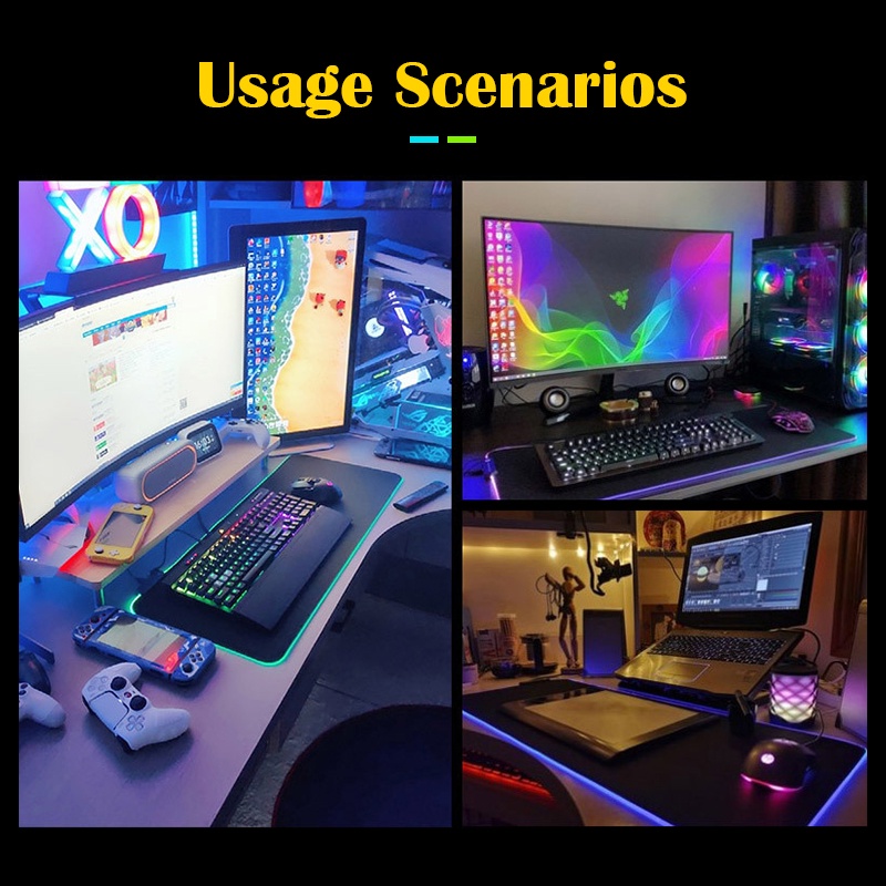 [SG Stock] New RGB Gaming MousePad/7 LED Color Backlit+3 Lighting Model Large Desk Mat Mouse Mad (Water-resistant)